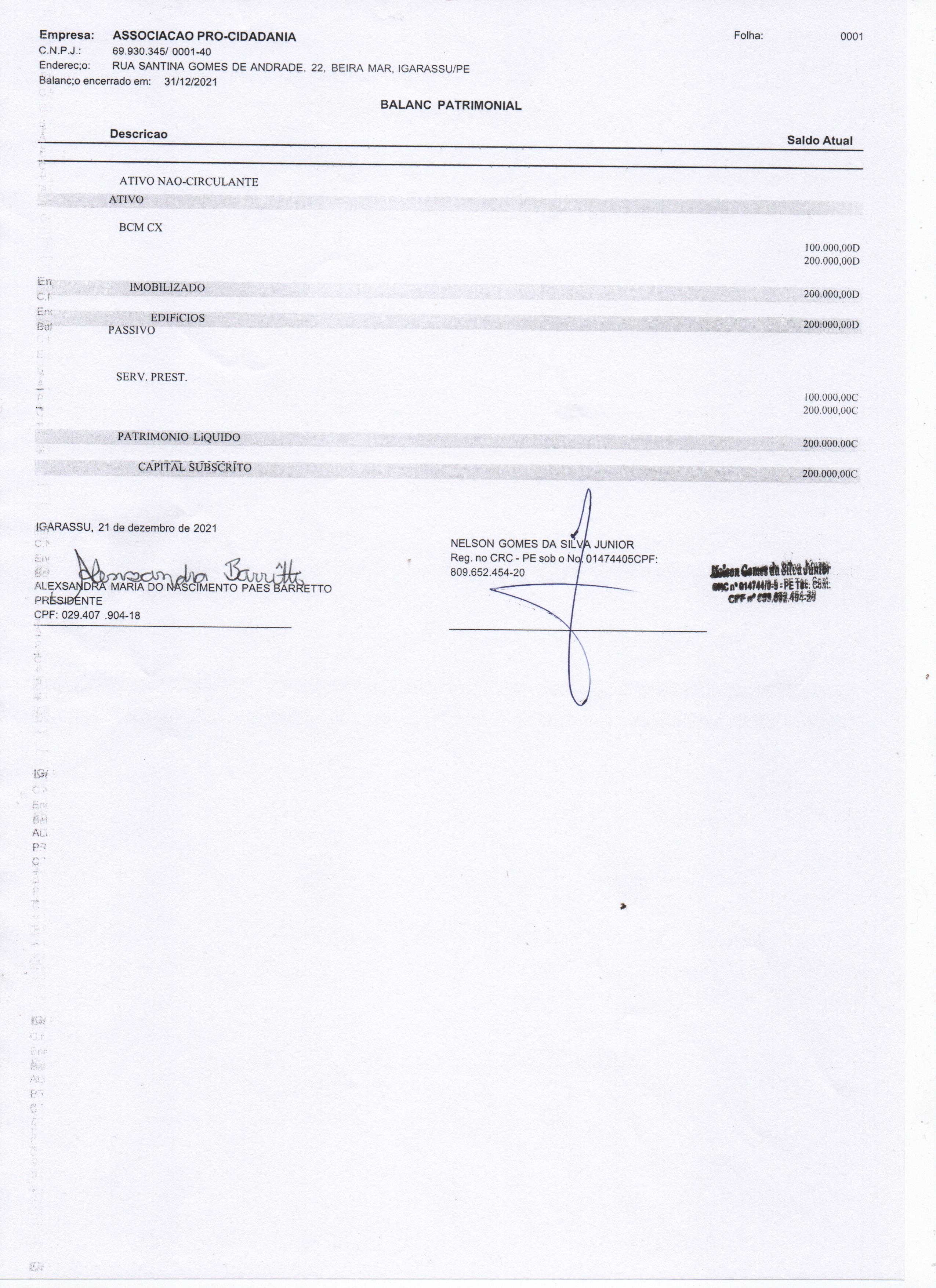 BALANÇO PATROMONIAL 2021